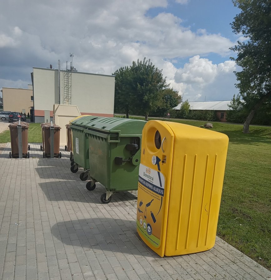 ir pakuočių atliekoms skirtus rūšiavimo konteinerius, kad galėtų būti